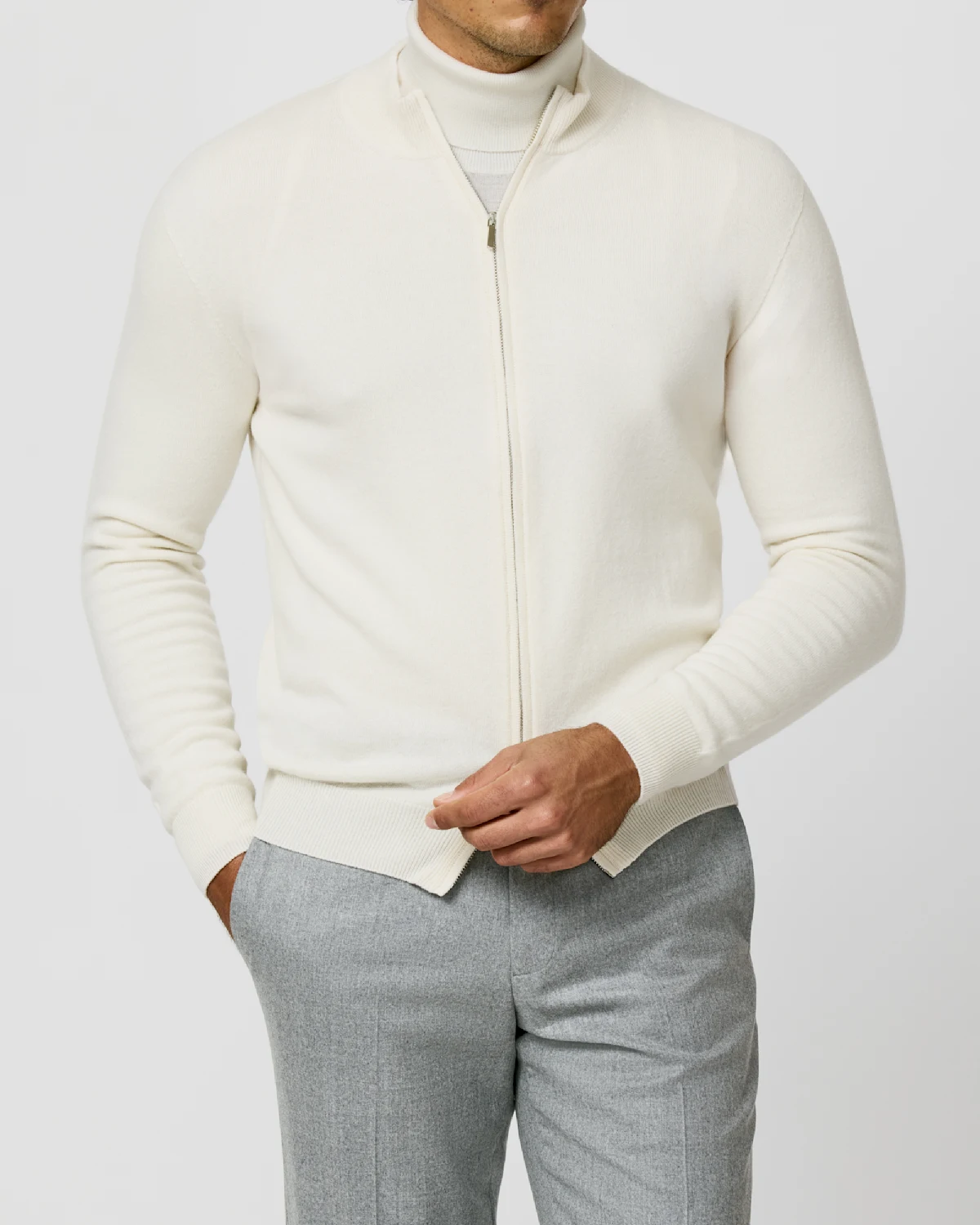 Be the first to review “K10043 Beige/Grey Zip front cashmere”